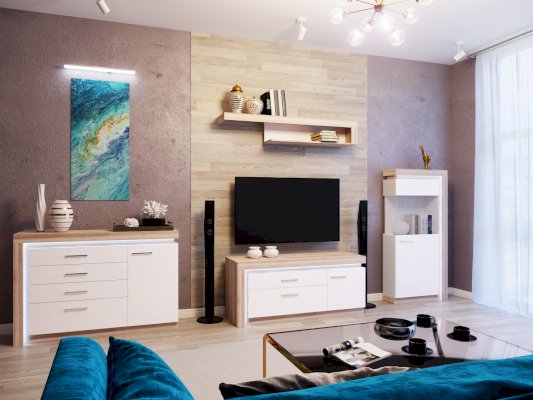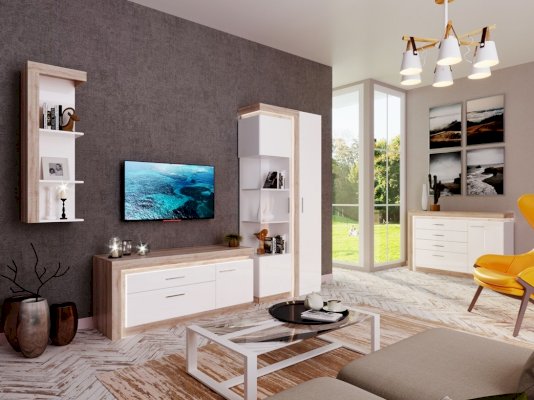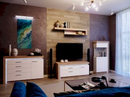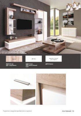 - Коллекция представлена в следующем цветовом решении: Корпус ЛДСП 16 мм в декоре «Дуб Сакраменто» и фасад МДФ 16 мм в декоре «Белый снег глянец»