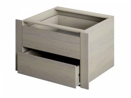 Шкаф можно дополнить встраиваемым модулем с выдвижными ящиками. Модуль устанавливается на любом уровне и в любой секции, но рекомендуемое место размещение - нижняя секция отделения с полками.